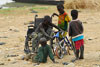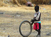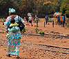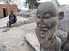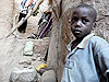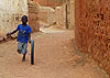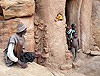 scènes de vie au Mali : une femme porte un enfant dans son dos, un enfant sur un âne , des villageois Maliens, femmes en tenue traditionnelle qui portent des marchandises sur leur tête