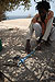 Daouda est musicien, plasticien et surtout poète. Son travail de plasticien est essentiellement basé sur la récupération. Tout ce qui est rejeté sur les rives de l’île est recyclé. Les vieilles sandales, les téléphones portables, les clous, les plastiques trouvent à Gorée une nouvelle vie.