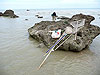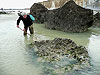 Pêche à pieds sur les plages de normandie : coquillages et crustacés. Des crevettes dans l'épuisette !
