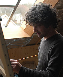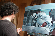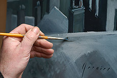 Architecte de la peinture, bâtisseur de toile, Thierry Grenier n’en fini pas de peindre des maisons, des villages.